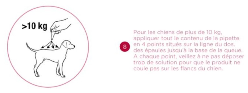 - Après ouverture de la pipette, le contenu doit être entièrement appliqué sur la peau de l' animal.