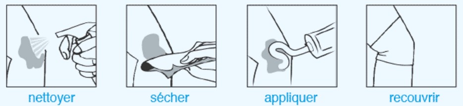Nettoyez et séchez délicatement la plaie avant d’ appliquer le gel.